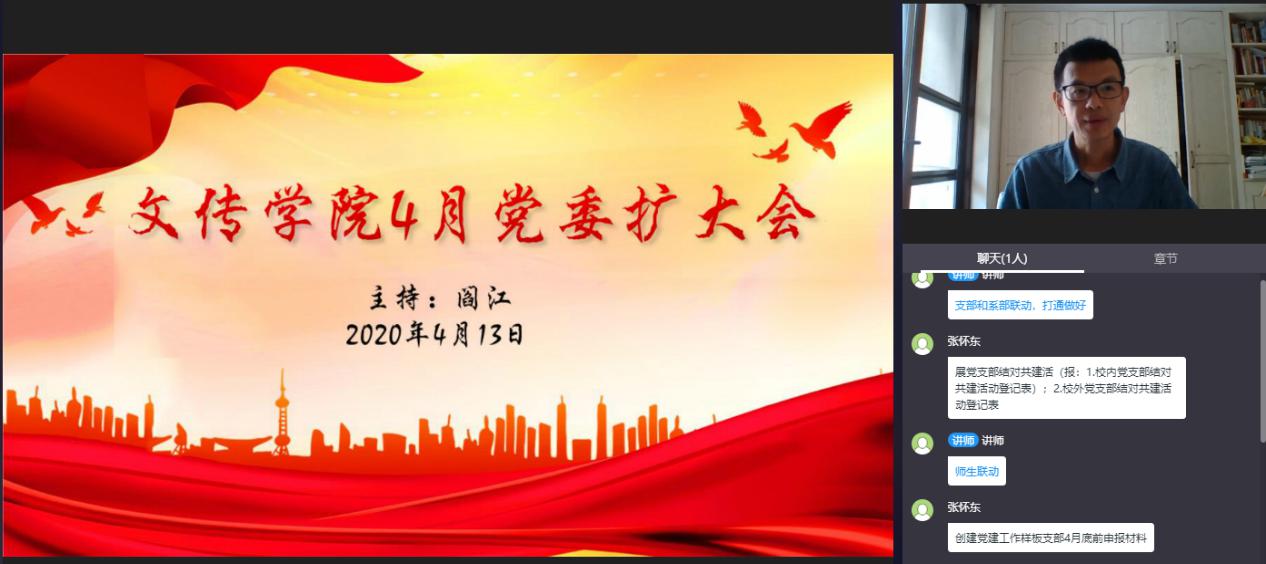 4月13日,文传公司党委召开线上会议,学习习近平总书记在4月8日召开的中共中央政治局常务委员会会议上的重要讲话精神和中共中央办公厅印发《党委(党组)落实全面从严治党主体责任规定》,贯彻落实党中央关于新冠肺炎疫情防控工作和全国复工复产的决策部署,了解国内外疫情防控形势,分析研究学院常态化疫情防控工作,按照公司党委的决策部署,扎实推进公司党建和公司产品工作。公司党委书记阎江主持会议,公司党委委员、师生党支部书记参加会议。