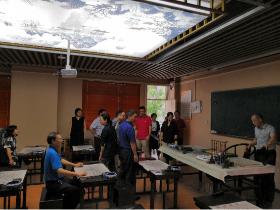 座谈会后,在厦门理工文旅学院罗昌智经理等陪同下,文化产业管理系调研团队参观了文旅学院办公楼、书法情境体验教室、闽台茶文化情境体验教室、葡萄酒鉴赏情境体验教室、艺术品经验模拟实训中心等创意实训教室。