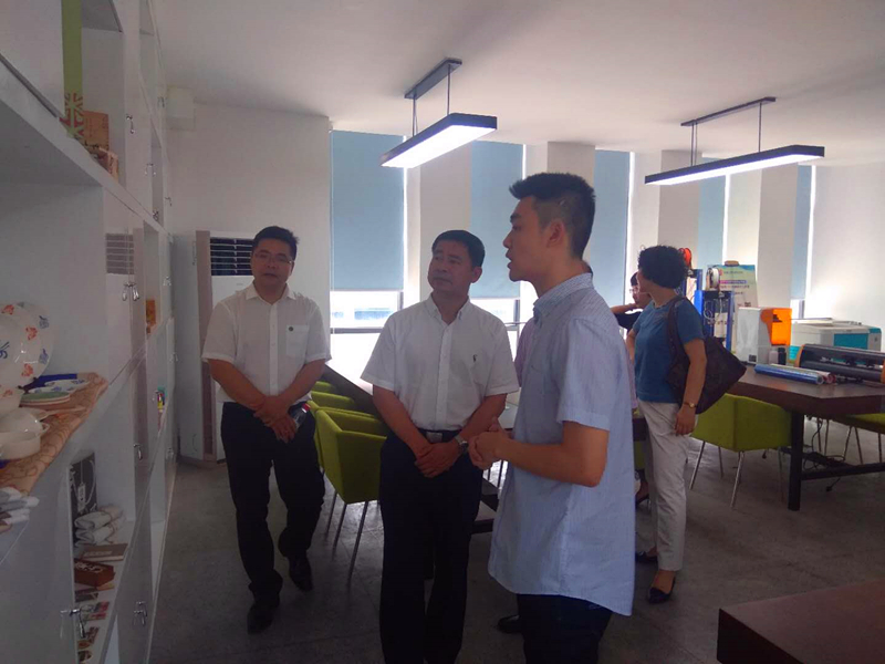 2018年5月2日上午,在公司党委副书记吕琦元、校员工处处长黄金和的陪同下,广东省教育厅调研组一行走进太阳成集团tyc234cc古天乐,此行主要是参观太阳成集团tyc234cc古天乐的创新创业平台,重点在图形工作室、文创工坊和设计工坊三个实验室。